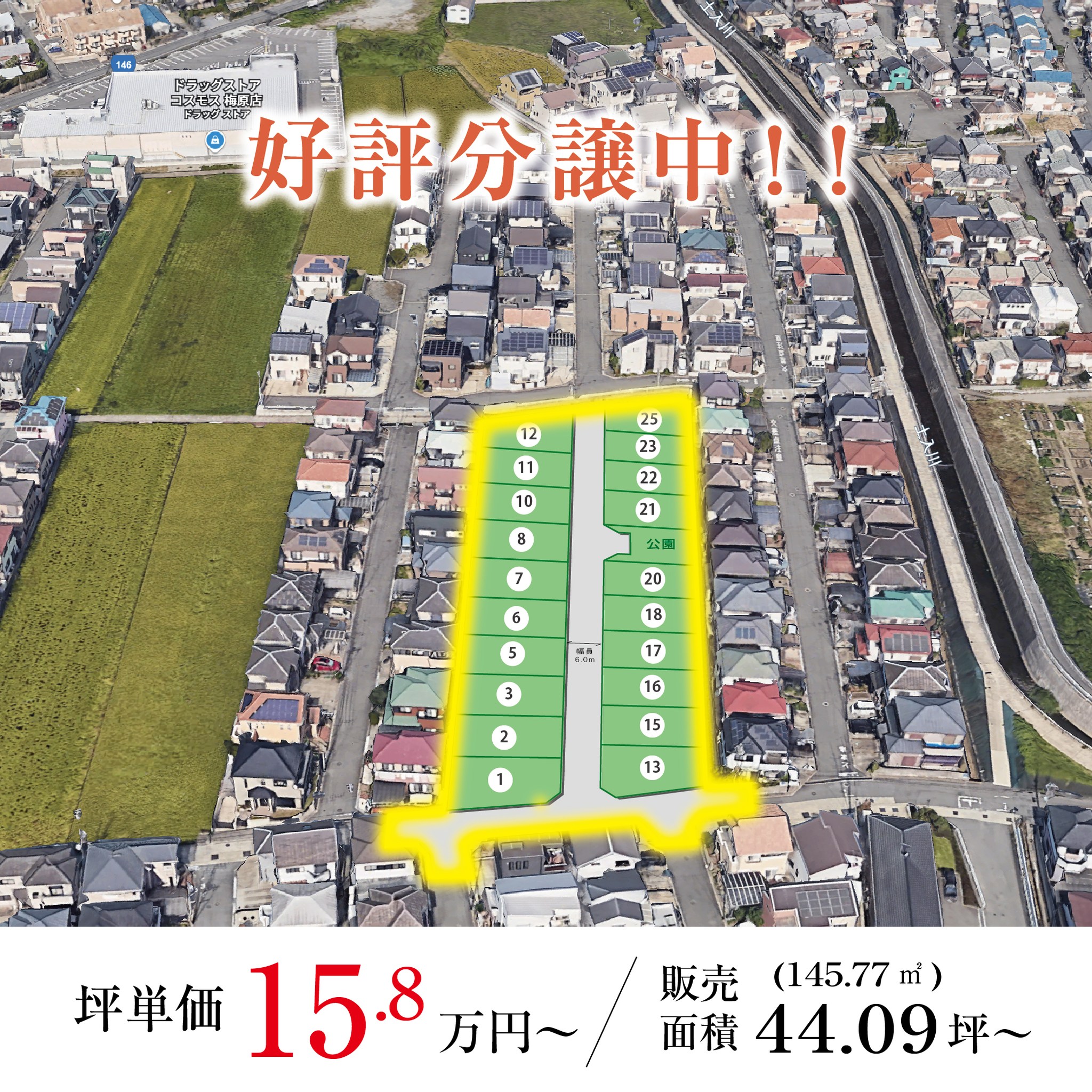| 特記事項 | ※販売中の区画につきましてはお気軽にお問い合わせください。 ※建築条件付き宅地分譲になりますので、弊社と建物の建築請負契約を締結頂くことが条件になります。 ※区画面積や価格は変更になる場合があります。 ※掲載内容と現況に相違がある場合は現況が優先になります。 |