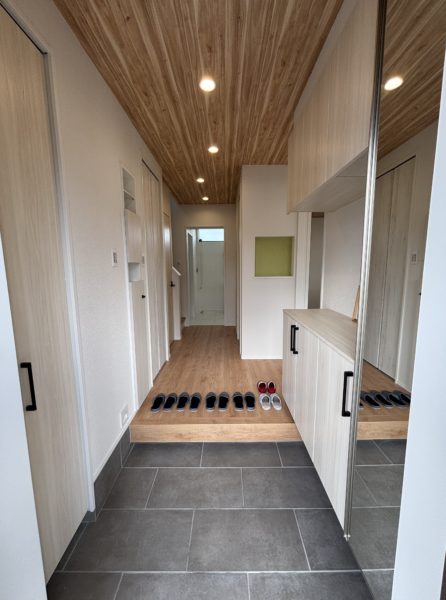 玄関はゴルフバッグやベビーカーなど大きな荷物を片付けることができるシューズクローゼットを完備。