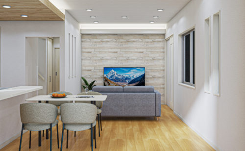 家族が集まるリビングは当社イチオシの「ハイルーフ天井高2m80cm」を採用。