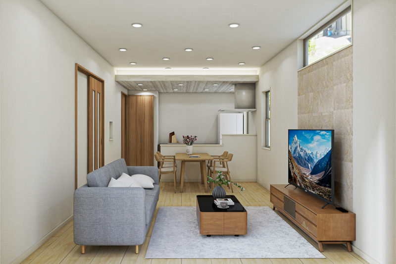 自然な木目が優しく広がり、LDK全体にやわらかさと統一感をプラスしてくれます。