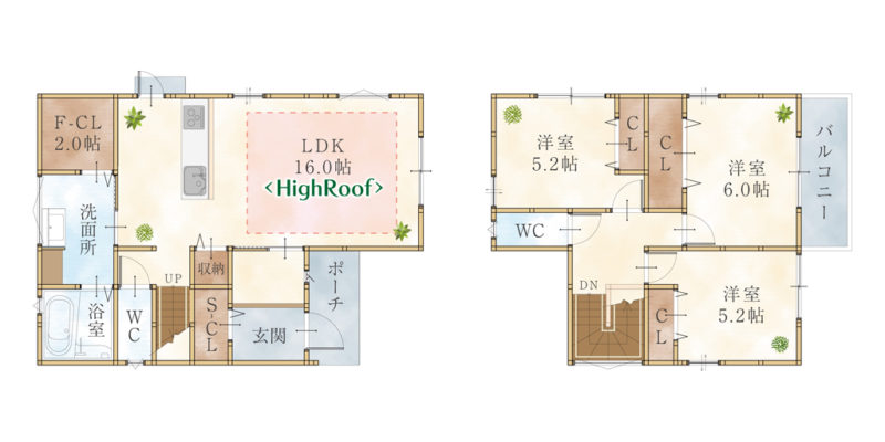 | 間取内容 | LDK16畳 1階 洋室6畳 2階 洋室5.2畳 2階 2室 | ||