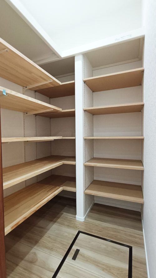 パントリー付きでキッチンまわりもスッキリ収納。