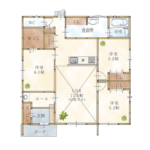 玄関を入るとシューズクロークがあり、家族みんなの靴をすっきり収納することができます。