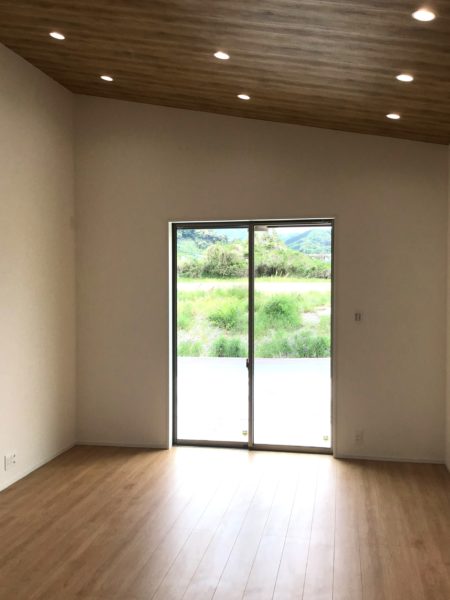リビングは木目調の天井クロスで温かみのある空間に仕上げ、自然な木の風合いが日々の暮らしにやさしい雰囲気を添えます。