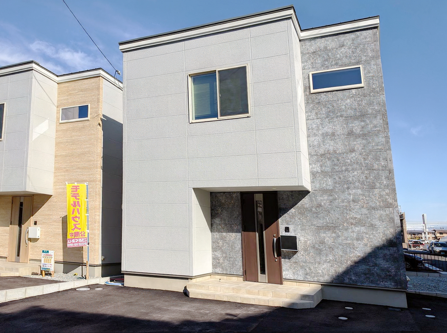 落ち着いたグレーをベースに、落ち着きのあるブルーグレーのサイデイングを採用。