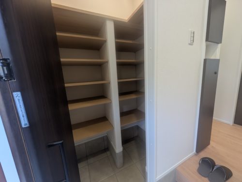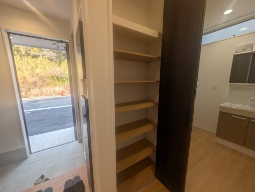玄関にはシューズクローゼットがありベビーカーやゴルフバッグなどの収納が可能です。