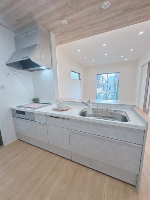 キッチンは家族と自然に会話を楽しめる対面式で、カウンター付き。