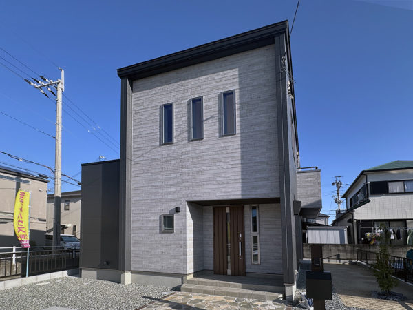 グレーのかっこよさに、落ち着いたグレージュの温もりが加わることで、モダンで親しみやすい外観に仕上がっています。