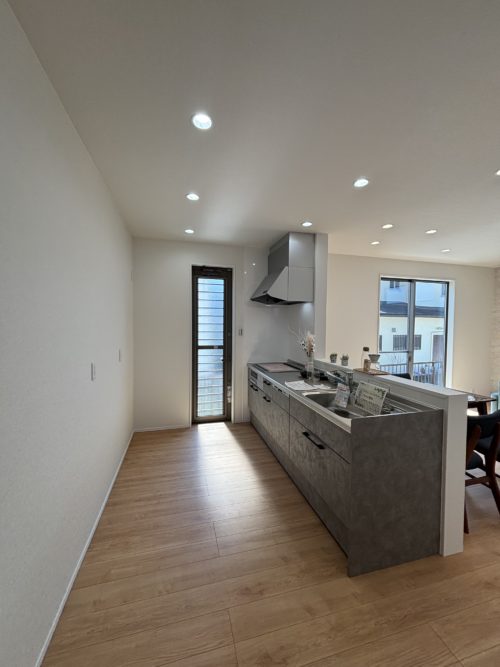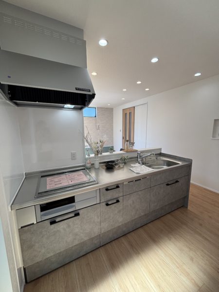 キッチン扉もグレージュで統一し、空間全体に統一感と温かみを感じることができます。