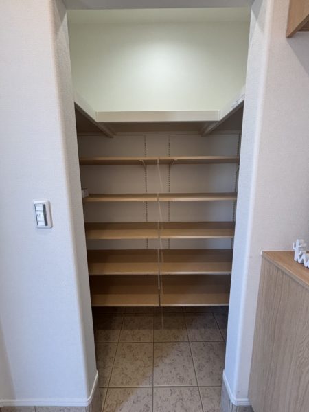 玄関にはシューズクローゼットがありベビーカーやゴルフバッグなどの収納が可能です。