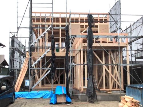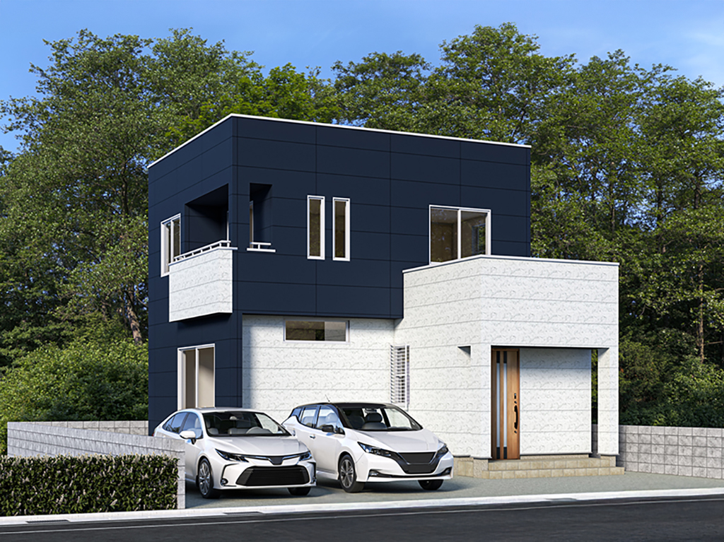 ネイビーの外壁と、明るく清潔感のあるホワイトマーブルのサイディングを組み合わせた外観のお家です。