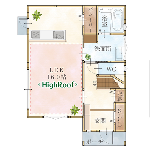 さらにパントリーを備え、食品や日用品の収納に便利で、すっきりとしたキッチン空間を保てます。