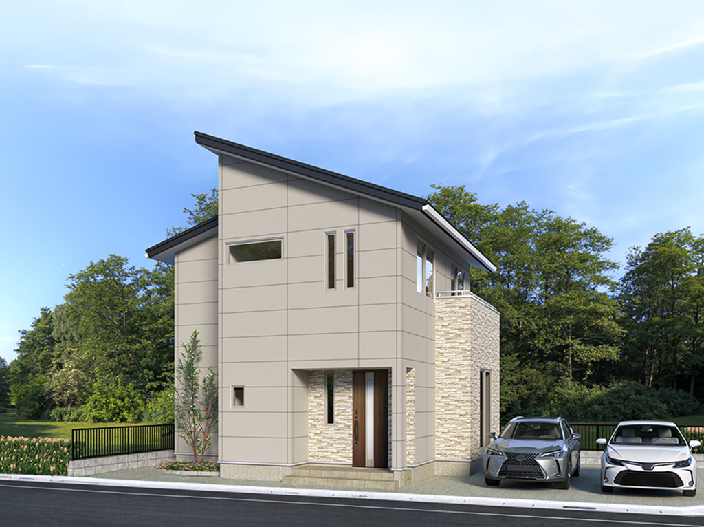 外壁は明るいベージュを基調に、サイディングにはチタンブラウンを採用。
