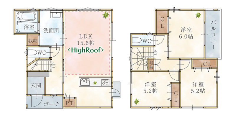 2階には主寝室と洋室2部屋があり
