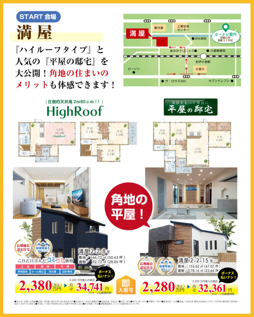 ✔ 2階建て・平屋建て、2棟同時公開!