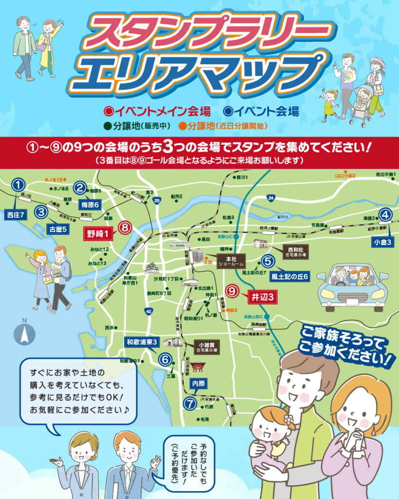 イベント情報 5月3日(日)・4日(月)・5日(火)・6日(水)住まいるスタンプラリー開催! 自分たちにはどんな家が合っているんだろう?はじめての住まい探し、何から始めたらいいのか分からない… そんな方にこそ参加してほしい!モデルハウスと分譲地を巡るスタンプラリーです。 和歌山市内9か所のモデルハウス・分譲地を巡ってスタンプを集めよう! スタンプを3つ集めると豪華賞品の当たるガラガラ抽選会(空くじなし)、カップ麺つめ放題🍜などのイベントに参加できます🎪 3会場目はゴール会場となる 野崎1 or 井辺3いずれかにお越しください! Contact Form お名前必須 ふりがな 電話番号必須 郵便番号 都道府県 市区町村 それ以降の住所 マンション名等 E-mail(半角)必須 日付必須 ▼ご選択ください5月3日(日)5月4日(月)5月5日(火)5月6日(水) 時間必須 ▼ご選択ください10:0010:3011:0011:3012:0012:3013:0013:3014:0014:3015:0015:3016:0016:3017:0017:30 以前のお問い合わせについて必須 初めて問い合わせる 過去に問い合わせたことがある (担当者名:) いずれかを選択してください。 担当者名を入力してください。 当社をどこでお知りになりましたか? 必須 Yahoo や Google などのインターネットでの検索FacebookInstagram新聞・雑誌の広告・記事ご友人、知人の紹介その他 お問い合わせ内容 ※本フォームの送信は、SSL通信によって保護されています。 ※株式会社幸福建設は、お客様情報の適正な収集・利用、およびその保護に努めています。 ご記入頂きました情報につきましては、私どもからの情報発信をする際に利用します。 詳しくは「プライバシー・ポリシー」をご参照ください。