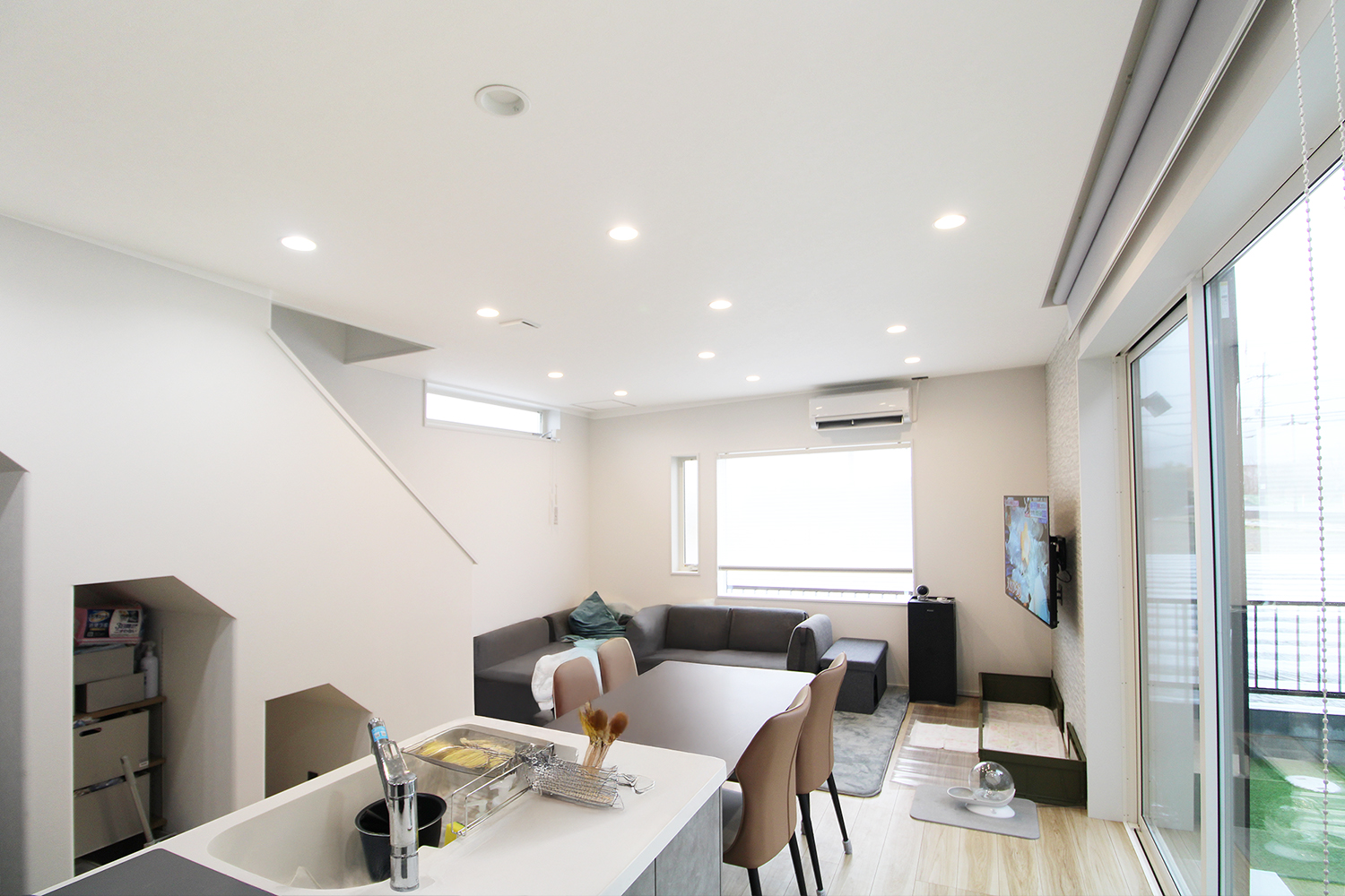 また、リビングから中庭に面した大きな窓のおかげで、室内が明るく開放感に溢れています。